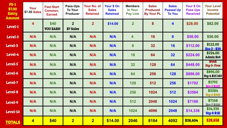 Your income would continue to DOUBLE on each Level as $7.00 sales